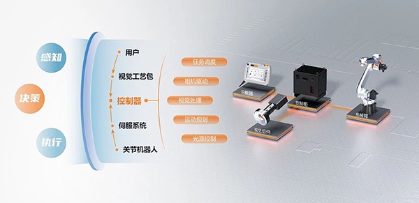 视控一体工艺包将感知、决策、执行融为一体,形成了高效协同的完整回路。我们把所有系统组成部分统筹到同一个系统框架下运行,方便系统快速部署,提高调试效率。