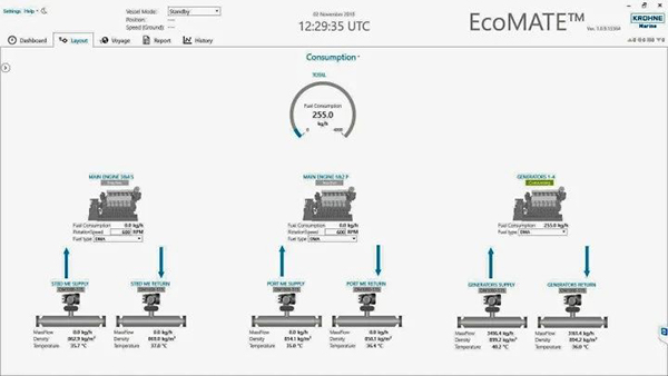 流量计的质量、密度和温度测量读数,都通过 Modbus 传输到EcoMATE™系统。通过这种方式,EcoMATE™ 可以对船上的燃料消耗进行监测和报告,提供满足 MRV 和 IMO 要求的关键排放数据。