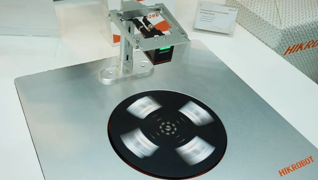 该展台展示了海康机器人DP系列3D激光轮廓传感器,配合VM3D算法对锂电池进行焊缝缺陷检测、顶盖平整度检测、密封钉缺陷检测的场景,具有高精度、高速率的优势。