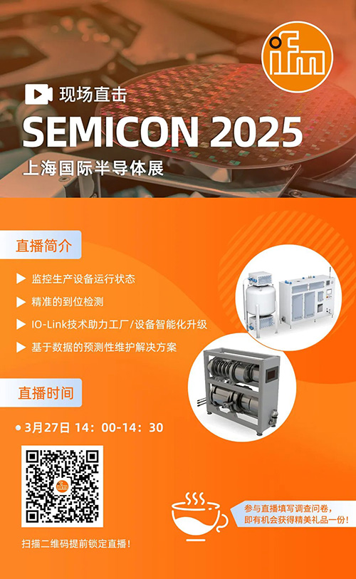 在半导体行业,创新与增长的步伐从未停歇。ifm 作为智能解决方案的先驱,致力于为半导体制造商提供先进的技术,助力其实现更高效、更可持续的生产。欢迎您线上线下随时联系我们,ifm的半导体行业工程专家将为您提供个性化的解决方案,助力您的晶圆制造工厂实现智能化升级!