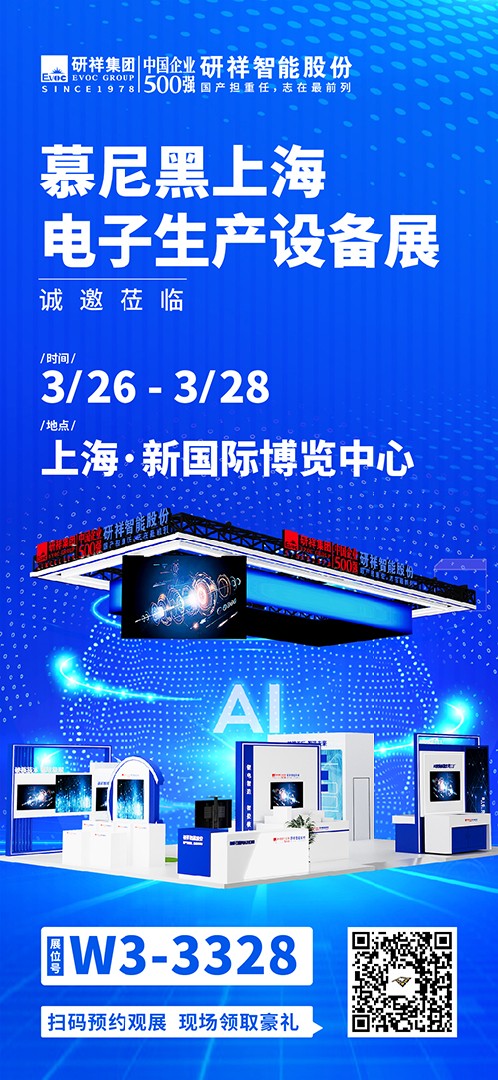 慕尼黑上海电子生产设备展作为电子生产制造行业的创新风向标,将于2025年3月26-28日在上海新国际博览中心盛大开启!作为工业4.0 的驱动者及创新者, 研祥智能始终站在科技前沿,以卓越的技术实力和创新精神,为企业数字化转型按下加速键。