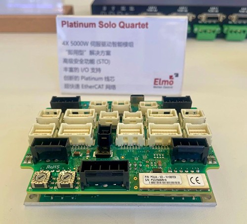 现场动态展示的高精密双驱龙门完美诠释了Elmo运动控制的整体解决方案,该系统搭载了Platinum Maestro多轴总线型运动控制器和一台Platinum String Quartet四轴驱动器及一台Gold Oboe驱动器,驱动器层龙门双驱、飞拍等。