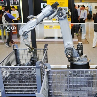 在翻砂件、光伏接线盒上下料工位,3D视觉引导系统柔性抓取料筐内堆叠的形状不规则的翻砂件和接线盒,轻松搞定无序抓取。