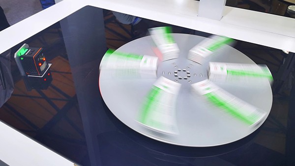 该展位展示了8k分辨率线阵相机对圆柱锂电池覆膜外壳进行缺陷检测。高速程控条纹光源轮询频闪,相机同步进行图像采集,配合优质图像算法,可识别气泡、擦伤、划痕、脏污等多类缺陷。