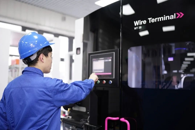 在车间自动化程度方面,针对线缆加工环节繁杂耗时的问题,威图提供了全新的WT 36线束加工中心,该机型由德国威图公司生产,一次性可装载多达 36 种不同的导线,可以连续批量进行导线的定长切割、剥皮、压接和线号打印,快速完成批量化、标准化的电控柜全自动线缆加工与预制,WT 36线束加工中心凭借其高效的自动化系统集成能力,有效地解决了这一问题。