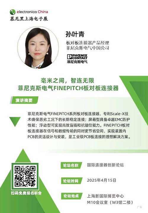 慕尼黑上海电子展期间,菲尼克斯电气的技术专家团队将齐聚展台,热切期待与您现场互动交流。无论是前沿技术的应用探讨,还是复杂项目的解决方案,菲家工程师天团都能凭借精湛的专业知识,为您剖析行业趋势,分享独家见解,助力您在风云变幻的市场环境中,精准把握新机遇,巧妙化解新挑战。期待与您携手突破行业常规,一同化身行业革新者,成为改写行业格局的 “Game Changers”!