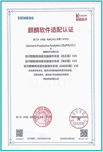 麒麟认证是由中国工信部与麒麟软件联合推出的权威国产操作系统认证体系,此次认证涵盖银河麒麟高级服务器操作系统(兆芯版、海光版、AMD64版)V10,意味着SiePA可在国产软硬件环境下稳定运⾏,进一步提升其在工业企业中的适用性,并增强用户在招投标中的竞争力。