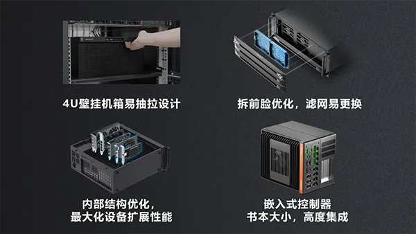 01、机箱上沿抽拉把手+快拆前脸:装配及维护时间节省超40%;