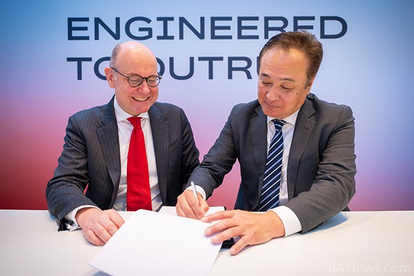 住友商事工程机械与采矿系统战略业务部(SBU)总经理Kenichi Hyuga与ABB过程工业业务全球总裁Joachim Braun在德国慕尼黑bauma展出席协议签署仪式。
