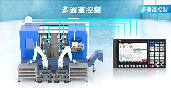 针对多品种小批量生产趋势,NC5支持多程序同时加工,实现多工位工艺,一台控制器即可同时控制机械加工与机械手臂上下料,节省设备建置、人力与时间成本。