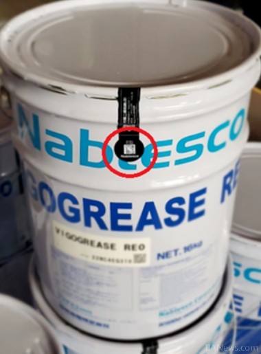 (1)在油桶封口处贴有正规、完好的“Nabtesco”润滑剂鉴别标签,且需要通过官方公众号进行正品鉴别