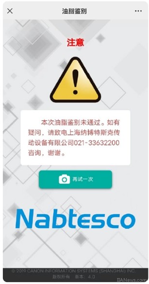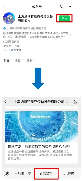 ②关注企业微信公众号(上海纳博特斯克传动设备有限公司),进入【油脂鉴别】页面