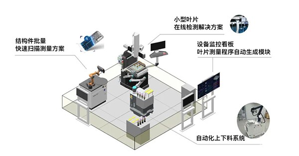 多品种小批量的小型叶片如何进行快速检测,如何兼顾客户高精度和高效率的需求?蔡司DuraMax测量机通过搭载pallet托盘快换检测系统,保证产品良好的定位精度和检验重复性。便捷的软件功能极大提高编程效率,同时提供检测程序自动生成智能系统,减少测量人员工作强度,支持无缝集成在生产单元,为客户质量保驾护航。