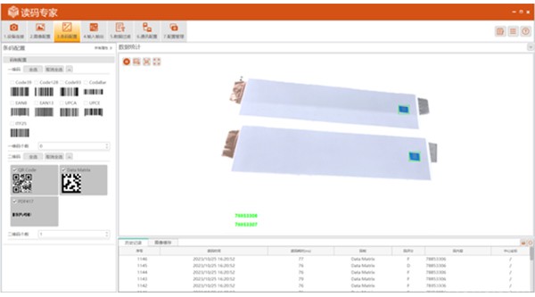 02、动力电池表面非光滑纹路,对比度差,需要读码器具备很强的图像处理能力,R-6000系列智能读码器读码效果显而易见。