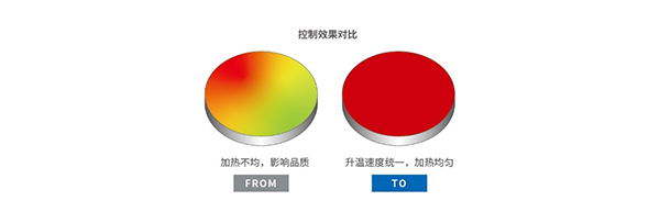 2、为了保证半导体晶圆的品质(热盘温度不均可能导致晶圆变形等不良),需要热盘整体高速同步升温,热盘各个区域温度保持一致。