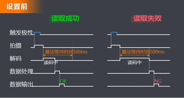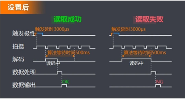 软件界面根据用户配置的触发帧计数、触发极性、触发延时、算法等待时间等参数,实时刷新时序图显示,使用户的参数预期管理更加直观。
