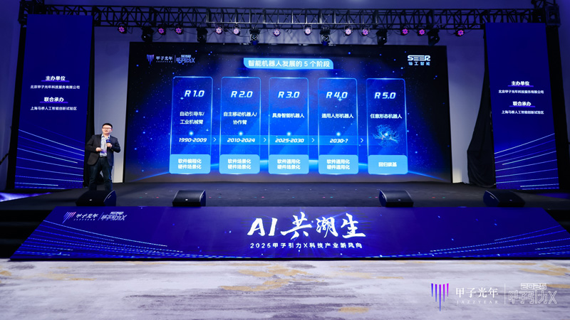 4 月 28 日,在「AI 共潮生—2025 甲子引力 X 科技产业新风向」大会上,仙工智能创始人兼 CEO 赵越分享了公司在具身智能领域的最新动向,阐释了具身智能革命下智能机器人的未来产业图景。