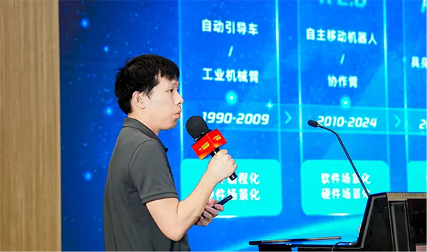 在具身智能的落地实践上,仙工智能联合创始人叶杨笙介绍了仙工智能的两种创新模式:多层语义地图+端到端导航+VLA模型+“老产品”与“老技术”+规控算法+工具链+人形/四足,并通过据身智能机器人控制系统,已经实现复杂场景自主决策,正加速具身智能落地。