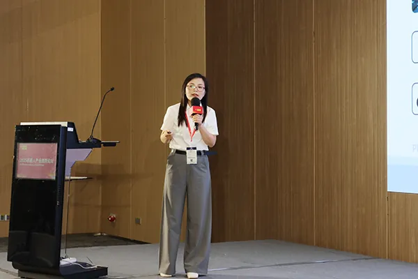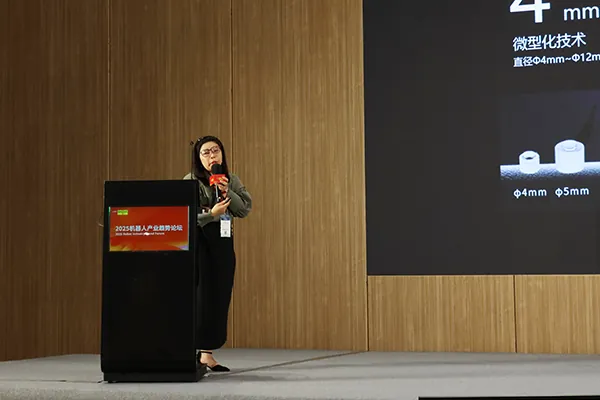 捷勃特机器人华南区销售总监梅睿展示捷勃特磁驱技术创新,MTS输送系统速度5m/s,定位精度±0.02mm,单芯片驱控一体架构(SCIMC)降低能耗,捷勃特机器人正以“机器人+磁驱输送” 融合创新推动产业智能化变革。