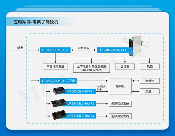 等离子刻蚀机是等离子刻蚀机是半导体制造中的关键设备,可用于制造微处理器、光纤通信器件等高精度芯片和电路。主要由真空室、等离子源、刻蚀腔等组成,以下是等离子刻蚀机的电源解决方案。