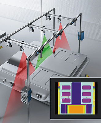 其它典型应用还包括:测量电极引出端的距离(使用InspectorP61x 2D视觉传感器);检测棱柱形电芯及其绝缘膜上的划痕、凹痕和气泡(使用3D-BVA / Ruler或Ranger3);检测模组和电池包的焊点(汇流排)(使用D-BVA、Ruler系统)。