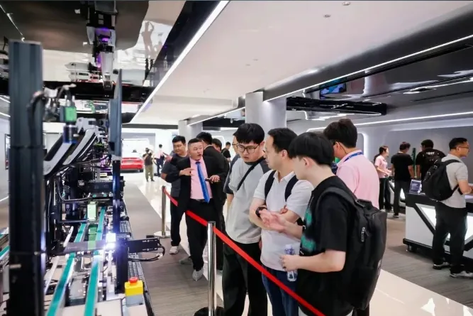 伴随华东视觉产业园的正式启用,与会嘉宾会还参观了机器视觉应用中心,三大主题展区1600㎡场景还原,直观展示了OPT产品方案在智能机器人、3C电子、半导体、汽车等多个行业场景的创新应用。