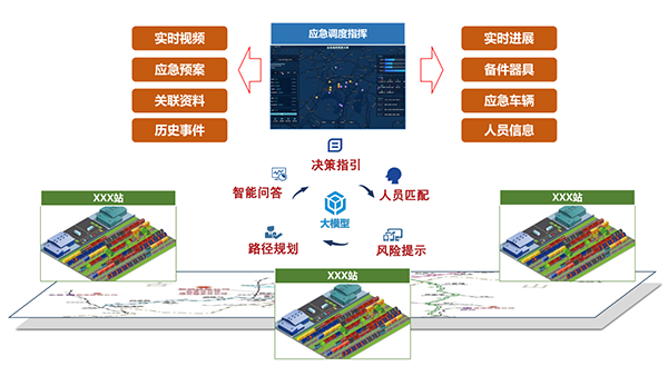面对突发状况,大模型可基于事件演化态势生成最优处置方案。当铁路沿线出现障碍物时,系统能自动制定包含紧急响应、现场处置、恢复行车及事后处理的完整应急预案,并通过可视化界面实时展示事态发展,为应急指挥提供决策支持。