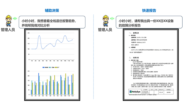 通过深度挖掘设备数据,大模型可实现动态可视化分析与智能报告生成。在处理铁路信号设备故障时,系统不仅能自动生成包含故障原因、处置措施及影响分析的详细报告,还能提出针对性的设备改进与管理优化建议。