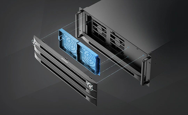 散热性能对于工控机的稳定运行至关重要。海康机器人上架式工控机在散热方面创新性地采用前面板双风扇设计,且风扇可根据工控机内部的温度变化自动调节转速。