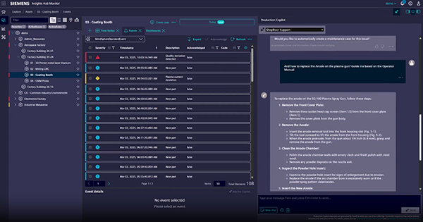 西门子 Insights hub 中的 Production Copilot 提供清晰的操作员指导,通过数据和经验推荐行动,消除对下一步的猜测。(图片来源:西门子)