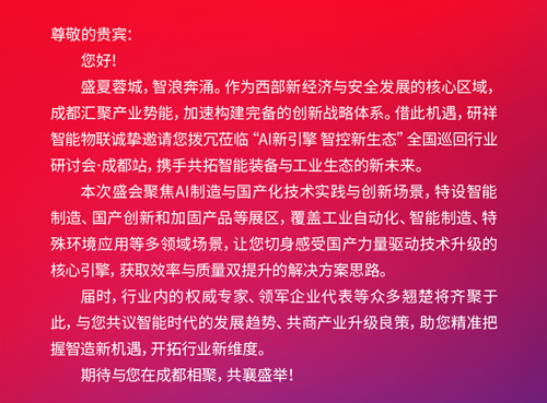 蓉城智浪奔涌,AI势能席卷而来。研祥智能物联聚首成都,深耕智造新机遇,诚邀您莅临。