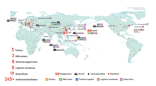 明纬在全球市场展现出卓越的发展态势,其全球布局彰显强大实力与深远影响力。