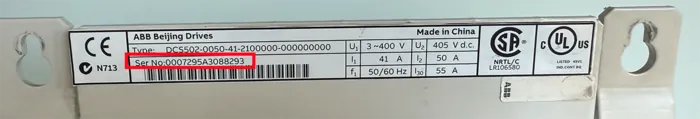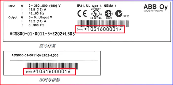 ACS550序列号说明:第1个数字1 是制造工厂代码,2、3位代表制造年份(例如:上图中示例序列号中的06代表2006年),第4、5位代表制造周次,后5位代表生产序列号,从00001开始计数。