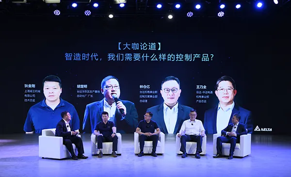 围绕“工业自动化的N+种可能”展开思想碰撞,揭示价值共生的进化路径,大会的高端沙龙环节为此次发布会注入了高潮。台达-中达电通机电事业部产品总监王乃全、台达机电事业群控制方案事业部总经理林仓亿、台达华东区生产基地自动化厂厂长胡楚明、上海威士机械有限公司技术总监狄金刚围绕产品研发、市场营销、生产制造及市场需求的趋势发展坐而论道,进行了热烈讨论。