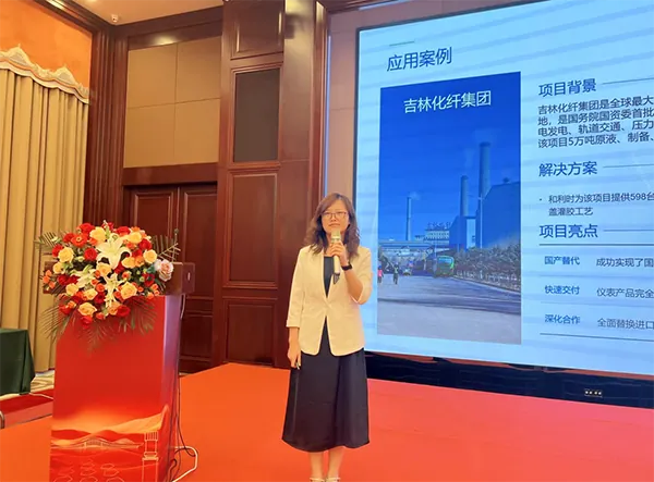 和利时仪表产品线总监刘华精彩分享了《和利时新一代智能压力变送器产品及应用案例》。她在演讲中展示了AT5000系列智能压力变送器在核心技术指标上的优势:超高精度(最高可达0.03%)、超强稳定性(长期漂移极小)、超宽温域(-45℃~+300℃环境温度)、优异的抗干扰能力以及友好的人机操作界面等。通过分享石油化工、食品医药、冶金造纸、新能源等行业应用案例,有力证明了在不同场景下的产品性能稳定可靠,目前产品已获得法国BV 的SIL2/3功能安全认证、美国HART基金会等多项国内外权威认证。
