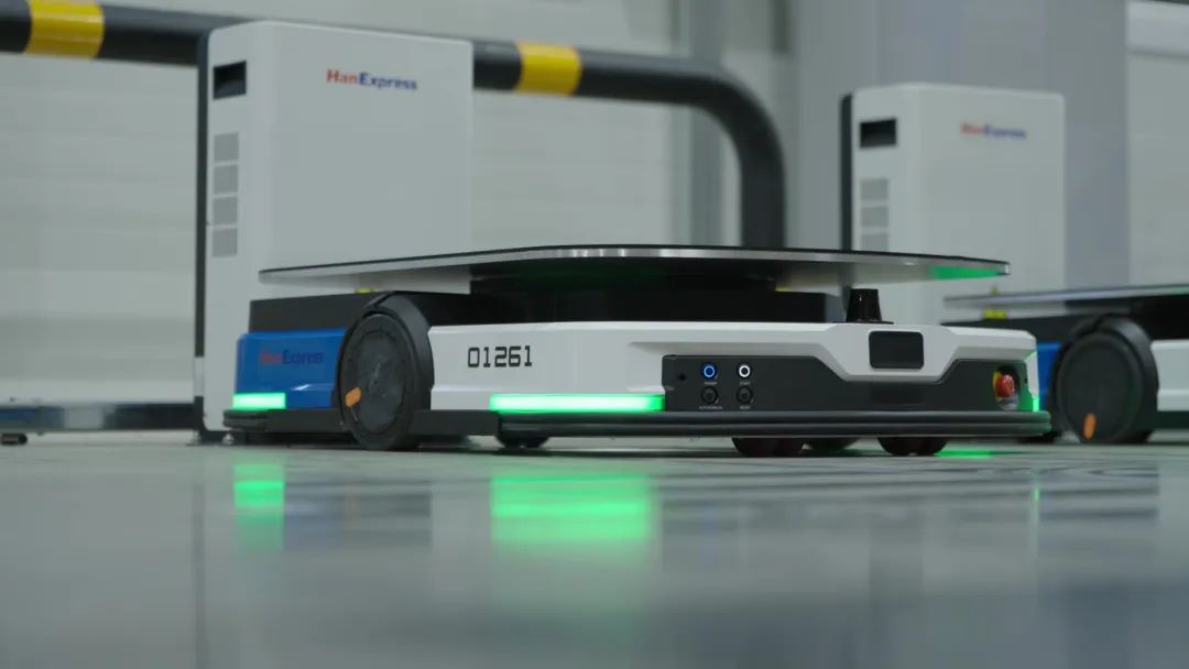 HanExpress 在其全新的 4000 平方米仓库内部署了海康机器人的“货到人”解决方案,包括 50+台AMR、RCS机器人控制系统。移动机器人将库存货架自动运送到工作站,再将拣选好的物品由工作站运输到传送带,实现拣选-配送的全流程自动化。