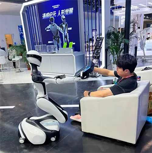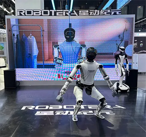 有机器人界“小腰精”之称的星动Q5,以全身44个高自由度设计,将“六边形战士”的“身体”灵活性与“大脑”学习能力完美融合。它能快速学习新服务技能,支持37种语言实时切换,在接待、导购、导览等多样化任务中表现出色。目前已在北京世纪金源购物中心、成都大熊猫繁育基地、四川科技馆等场所实训,成为展厅展馆、零售场景的“新宠”。目前,星动纪元已实现超200台产品交付,还有上百订单交付中。