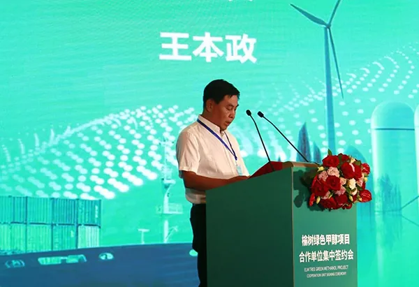 华锦能源董事长王本政在致辞中强调,榆树绿色甲醇项目是响应 “双碳”战略、推动能源结构转型的关键布局,将为全球碳减排贡献中国方案与中国智慧。