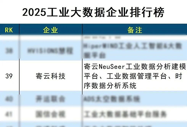 近日,由DBC德本咨询发起的“2025工业大数据企业排行榜”重磅发布。寄云科技凭借在数据智能领域卓越的技术创新实力与扎实的落地能力,成功跻身榜单之列。