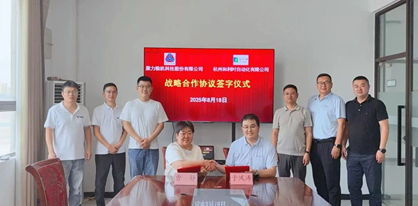 2025年8月18日,杭州和利时自动化有限公司华北大区总经理于凤涛以及相关领导到访安徽聚力粮机科技有限公司参观交流。双方围绕粮食行业智能化领域的合作方向展开深入探讨,并正式签订战略合作协议,为后续协同发展奠定坚实基础。