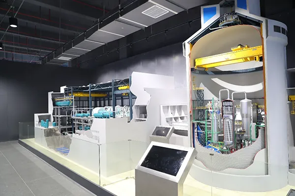 华能石岛湾高温气冷堆:配备剖面压力容器、蒸汽发生器、磁悬浮主氦风机等超大型设备模型。