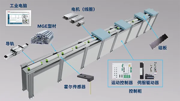 早在2005年博世力士乐就推出了磁悬浮输送技术,历经了约二十年的市场验证,FTS柔性输送系统以其柔性高、负载大、速度快、定位准等优势,在高端传输线体市场占据了重要的一席之地。FTS专为厂内物料传输而生,具备超高的负载能力 —— 单个动子负载可达 5000 公斤,同时可实现高达 2.5m/s的运行速度与 ±0.02mm 的定位精度,树立了行业技术标杆。