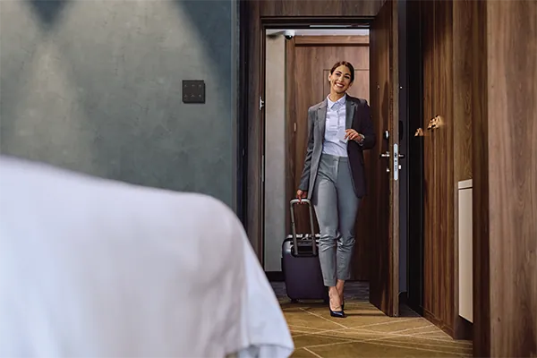 传统酒店和民宿在进行智能化改造时常受限于布线复杂、施工周期长等难题。ABB必斐享无线客控系统采用蓝牙Mesh无线通讯技术,无需额外布线,显著降低改造项目的实施难度和成本。系统支持模块化设计,安装简便、灵活,可实现快速部署,大幅缩短工期,灵活适配从经济型到奢华型的各类酒店、民宿项目。