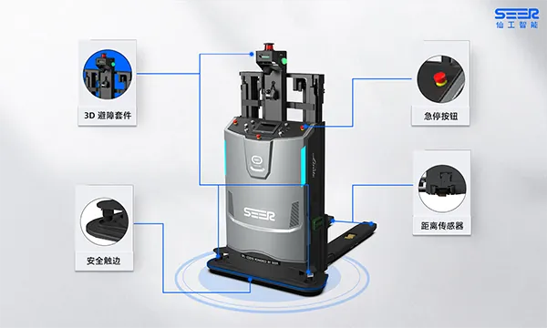 ● 配备多重感知与防护机制,通过 3D 深度相机实时监测周围环境,可在人机混合场景中实现主动避障与动态路径调整,安全性能全面提升。