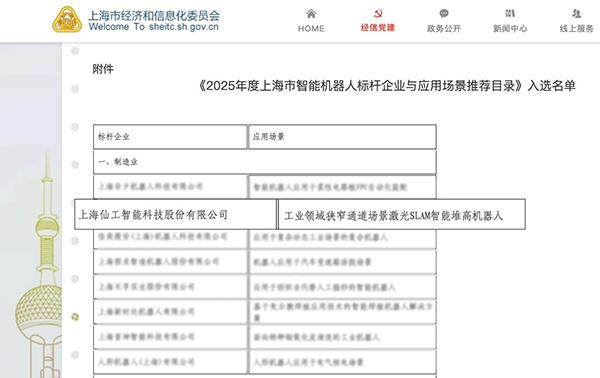 近日,上海市经济和信息化委员会等部门联合发布《2025 年度上海市智能机器人标杆企业与应用场景推荐目录》(以下简称《推荐目录》),仙工智能(SEER)凭借「基于控制系统的工业领域狭窄通道场景激光 SLAM 智能堆高机器人」成功入选。