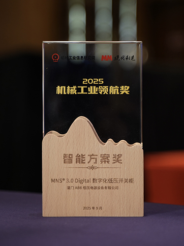 在全球制造业加速迈向数字化、智能化与绿色化的背景下,ABB凭借持续创新与技术实力,再次斩获行业权威奖项认可。厦门ABB低压电器设备有限公司推出的MNS® 3.0 Digital数字化低压开关柜,在"2025机械工业领航奖"评选中荣获自动化领航奖——智能方案奖。该奖项由机械工业信息研究院主办,旨在表彰在自动化、物流装备、机器人等领域具有突破性创新和显著产业价值的优秀企业与解决方案。