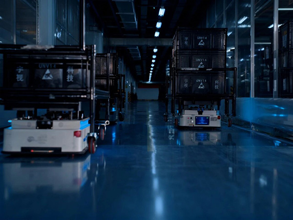迦智科技成功承担了宇视科技全球智能制造基地的智能物流系统主体规划与部署,为客户打造了一个覆盖从原材料上线、生产线精准供料到成品入库仓储的全流程智慧枢纽。