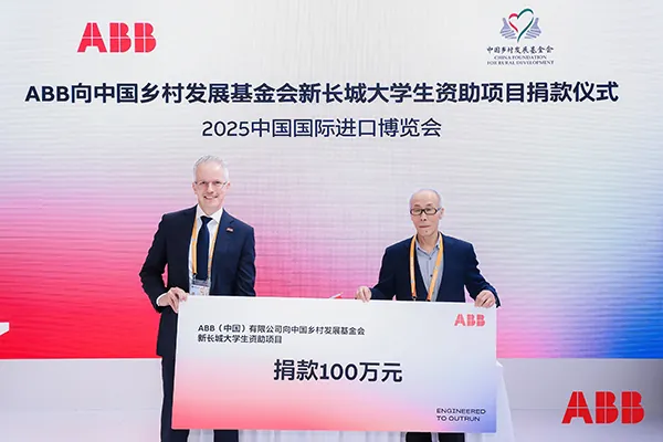 ABB与中国乡村发展基金会共同启动“2025年ABB-新长城大学生资助项目”,并宣布再次捐赠100万元人民币,助力来自九所高校的优秀学子完成学业。中国乡村发展基金会理事长郑文凯在捐赠仪式上向ABB(中国)有限公司总经理康亮颁发了合作二十年周年纪念奖牌:“二十年来,中国乡村发展基金会与ABB携手同行,积极参与和见证了中国扶贫开发、脱贫攻坚共推乡村全面振兴的伟大历程。自2005年以来,ABB新长城项目已累计捐款2100万元,惠及58所国内高校的近6000名学生。”