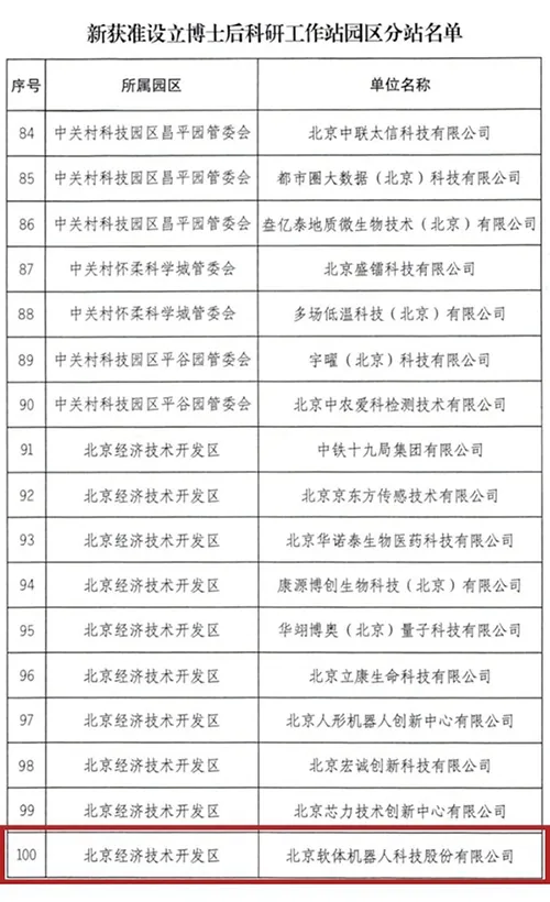 作为北京市博士后工作体系建设的重要一环,博士后科研工作站园区分站旨在推动企业与高校、科研院所的紧密合作,加快科技成果转化,培养适应产业发展需要的创新型青年人才。公司此次成功获批,充分体现了政府部门对软体机器人在科技创新、人才集聚与产业贡献方面的认可与支持。
