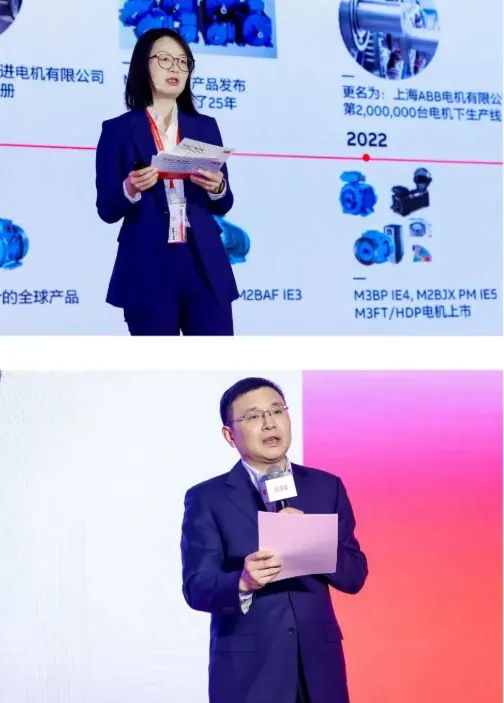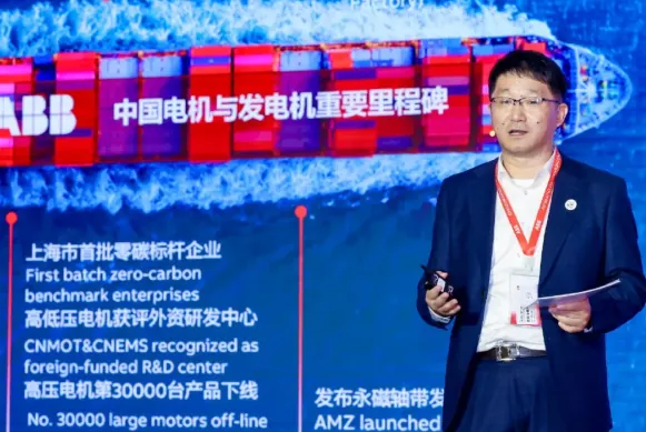 ABB电机与发电机业务单元中国区市场与销售负责人张建刚既向客户表达诚挚谢意也回顾了ABB电机与发电机从入局到行业领跑的进阶之路,展示高效电机的技术突破明确了未来深耕中国、协同伙伴共赢的发展规划 。